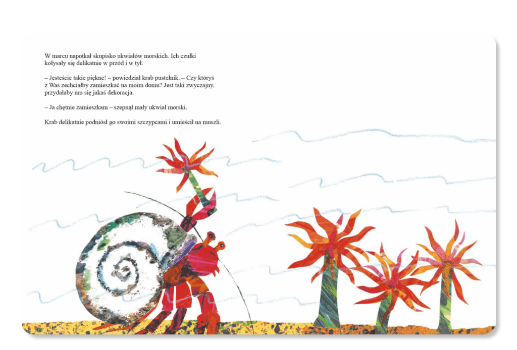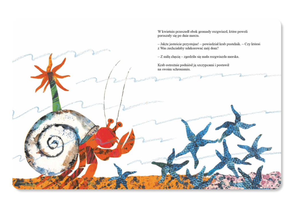 Dzieci z wielką przyjemnością będą obserwować przygody kraba, a przy okazji poznają fascynujący świat morskich zwierząt, tak pięknie przedstawiony w charakterystycznych ilustracjach Erica Carle’a.